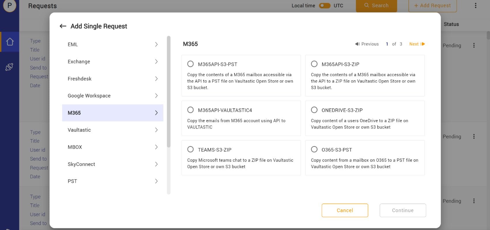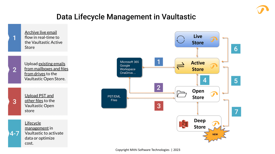 Vaultastic provides three basic stores to manage your storage cost based on the Data Lifecycle.